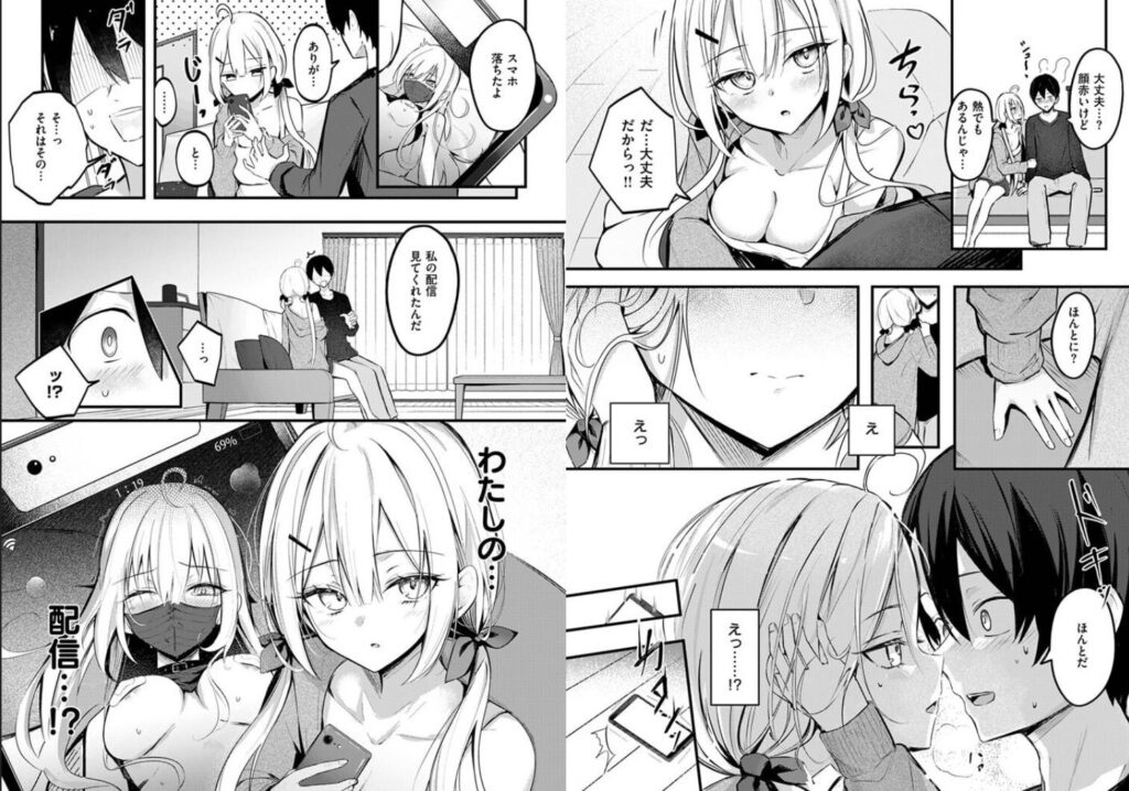 主人公は義妹に似た女の子がオナニー配信をしているところを発見します。